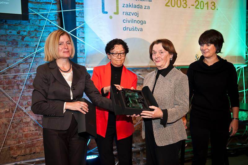Ovogodišnju Nagradu za društvenu inovaciju predsjednici Udruge Slavici Dujmović uručila je upraviteljica Nacionalne zaklade Cvjetana Plavša-Matić